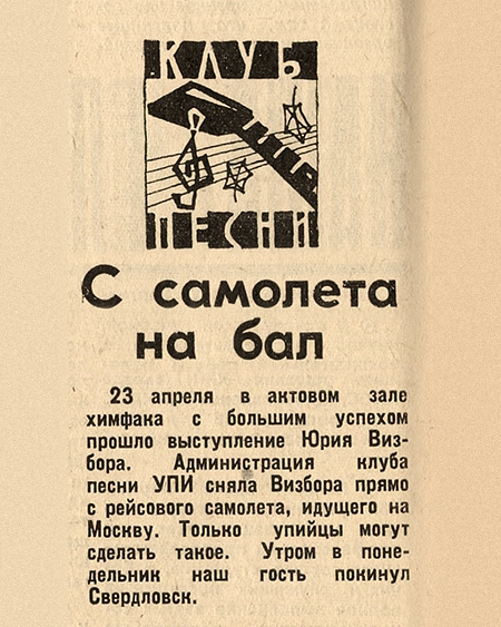 Администрация клуба песни УПИ действует быстро и решительно. Немного дерзости, немного удачи и вот уже вечер превращается в событие, о котором пишут в газете.